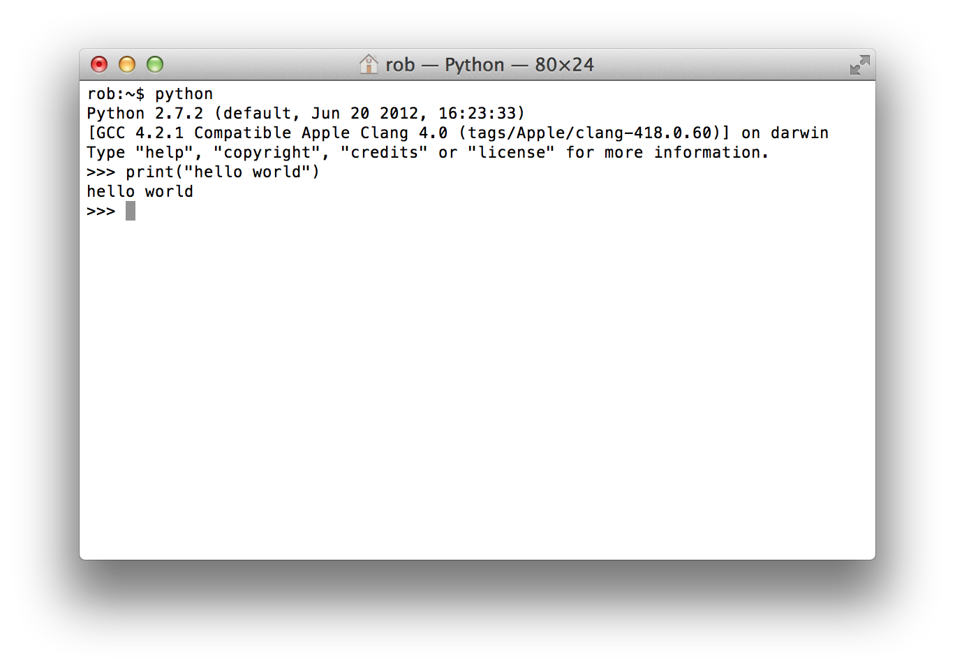 # We can also start the interpreter by simply typing ``python`` at the command line, and interactively type python code into the interpreter.