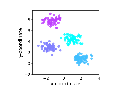 The four clusters are pretty easy to see in this example and we want clustering methods to determine the extent and number of such clusters automatically.