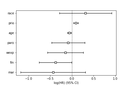 The Rossi dataset dataset concerns prison recidivism. The fin variable